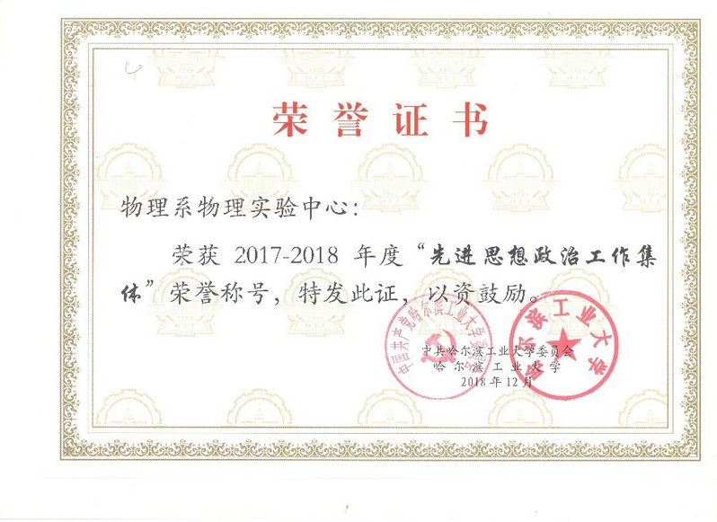 物理实验中心荣获“先进思想政治工作集体”荣誉称号,实验中心刘伟龙老师荣获“优秀思想政治工作者”荣誉称号。