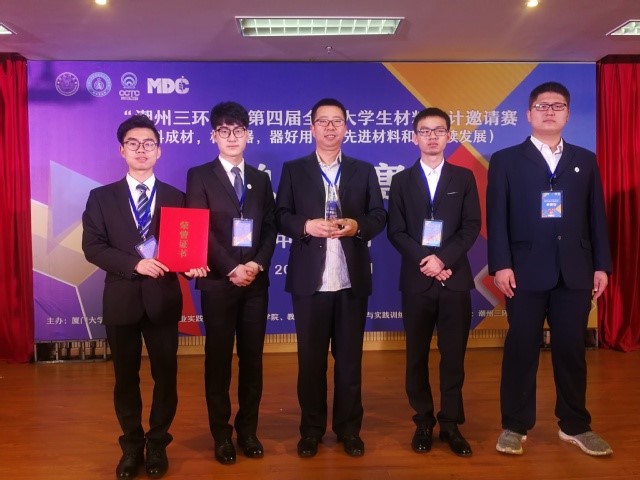 全国大学生材料设计邀请赛是由潮州三环资助、厦门大学举办的面向全国大学生的赛事,在国内有着很强的影响力。本次比赛于2018年11月启动,以“料成材,材成器,器好用——先进材料与可持续发展”为主题,吸引了全国50所高校的131支本科生队伍报名参与。经过层层选拔,最终遴选出来自天津大学、南开大学学等34所高校的45支队伍进入决赛。我校“孔武有力”团队首次参加该项赛事,就凭借出色表现顺利进入总决赛,并最终斩获特等奖作品受到与会评委专家的一致好评。